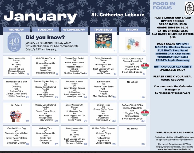 January Menu